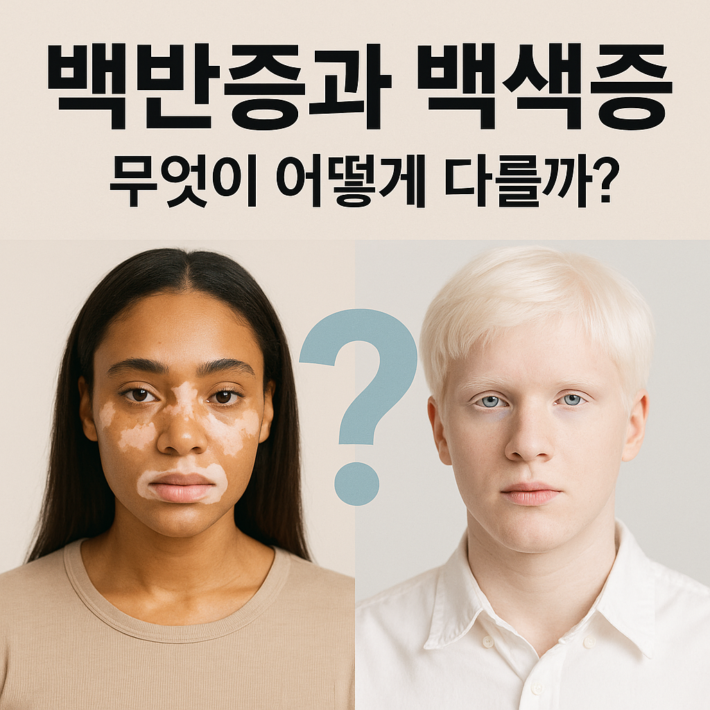 백반증과 백색증은 표면적으로는 피부가 하얗게 변한다는 공통점이 있지만, 그 본질은 완전히 다릅니다. 백반증은 후천적인 자가면역 질환으로, 부분적 색소 결핍이 특징이며, 치료와 관리가 가능한 질환입니다. 반면 백색증은 선천적 유전 질환으로, 전신적 색소 결핍을 동반하고, 현재까지는 근본 치료법이 없는 관리 중심의 질환입니다.