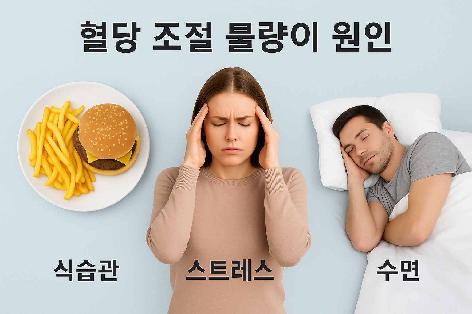 혈당 조절은 단순히 단 것을 끊거나 약을 복용하는 문제를 넘어, 식습관, 정서 상태, 수면 패턴이 서로 얽혀 있는 복합적인 문제입니다. 이 글에서는 식습관의 구체적 함정, 스트레스가 혈당에 미치는 생리적·행동적 영향, 수면 부족이 당 대사에 미치는 메커니즘을 각기 심층적으로 분석하고, 실생활에서 적용 가능한 구체적 해결책과 일상 팁을 제시합니다. 단기적인 대책이 아닌 장기적인 생활 패턴 개선 관점에서 접근해 혈당 관리 실패를 근본적으로 줄이는 방법을 알아보겠습니다.